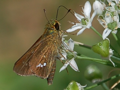「ニラの花で吸密するオオチャバネセセリ」 というタイトルにしましたが、