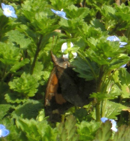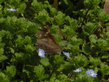 それでもオオイヌノフグリの花は、さすがにテングチョウの体重を支えきれないようで、
