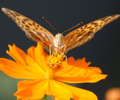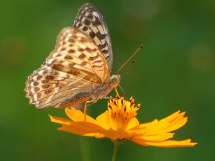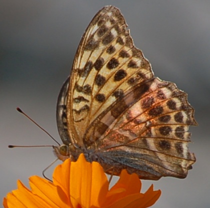 光の加減なんでしょうか、ミドリヒョウモンの場合、光が透けている部分は
