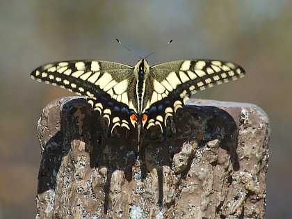 近くの柵の擬木に1頭のキアゲハがとまったので、